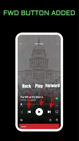 The style of the Mod also features a forward button which is not present in the regular app. You are able to rewind or play down speed.